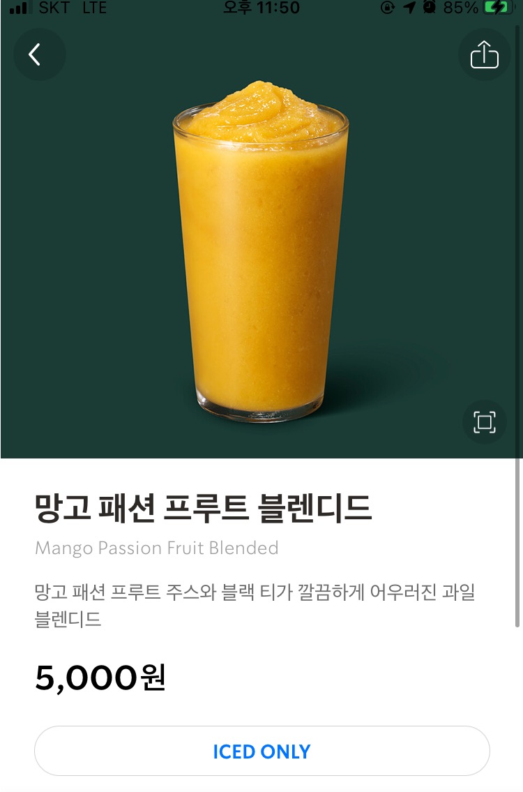 망고패셔후르츠 주스와 블랙티의 조합이라고 볼 수 있는데요 ,